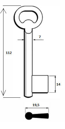 Klíč historický II. číslo 15Hotový historický tvarový klíč se šířkou praporku 14 mm.Historický klíč široký.Číslo je vyražené na hlavě klíče.Ilustrační foto.