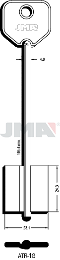 Klíč JMA ATR-1GOznačení polotovaru klíče: ATR-1G.Kategorie: nábytkové, trezorové a vratové klíče.Pro: ATRA ®.ALTERNATIVNÍ ZNAČENÍERREBI: 2AT3KEYLINE: 5ATLOTUS: 4ARA7ORION: 3ATRSILCA: 5AT9