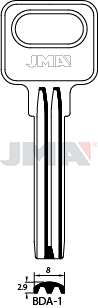 Klíč JMA BDA-1 Označení polotovaru klíče: BDA-1.Kategorie: důlkové klíče.Pro: BAODEAN ®.Další značky: BTV ®.ALTERNATIVNÍ ZNAČENÍERREBI: MAS2SILCA: BAE1