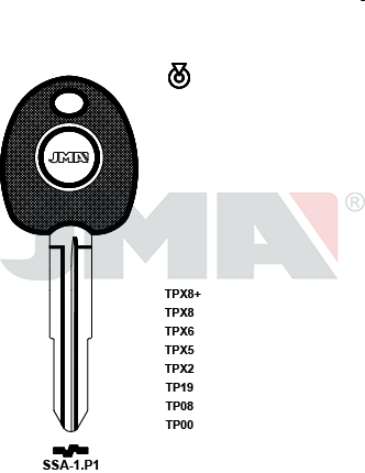Klíč JMA TP00 SSA-1P1Klíč s přípravou na čip JMA.Označení polotovaru klíče: TP00SSA-1P1.Kategorie: Auto-moto klíče s přípravou na čip JMA (TP00).Pro:SSANGYONG ®: ACTYON, KYRON, REXTON