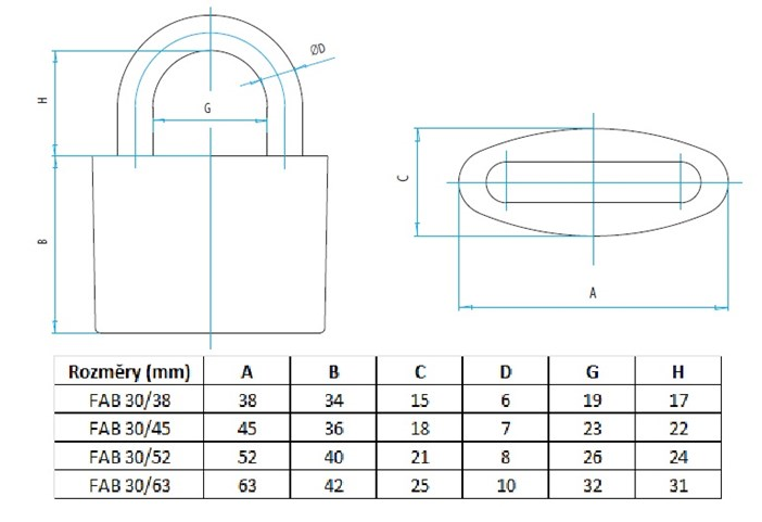 Zámek visací FAB 30H/38