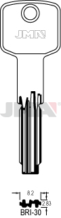 Klíč JMA BRI-30Označení polotovaru klíče: BRI-30.Kategorie: důlkový klíč.Pro: BRICARD ®.Další značky: STANDERS ®.ALTERNATIVNÍ ZNAČENÍERREBI: BD23LKEYLINE: BD20SILCA: CS115
